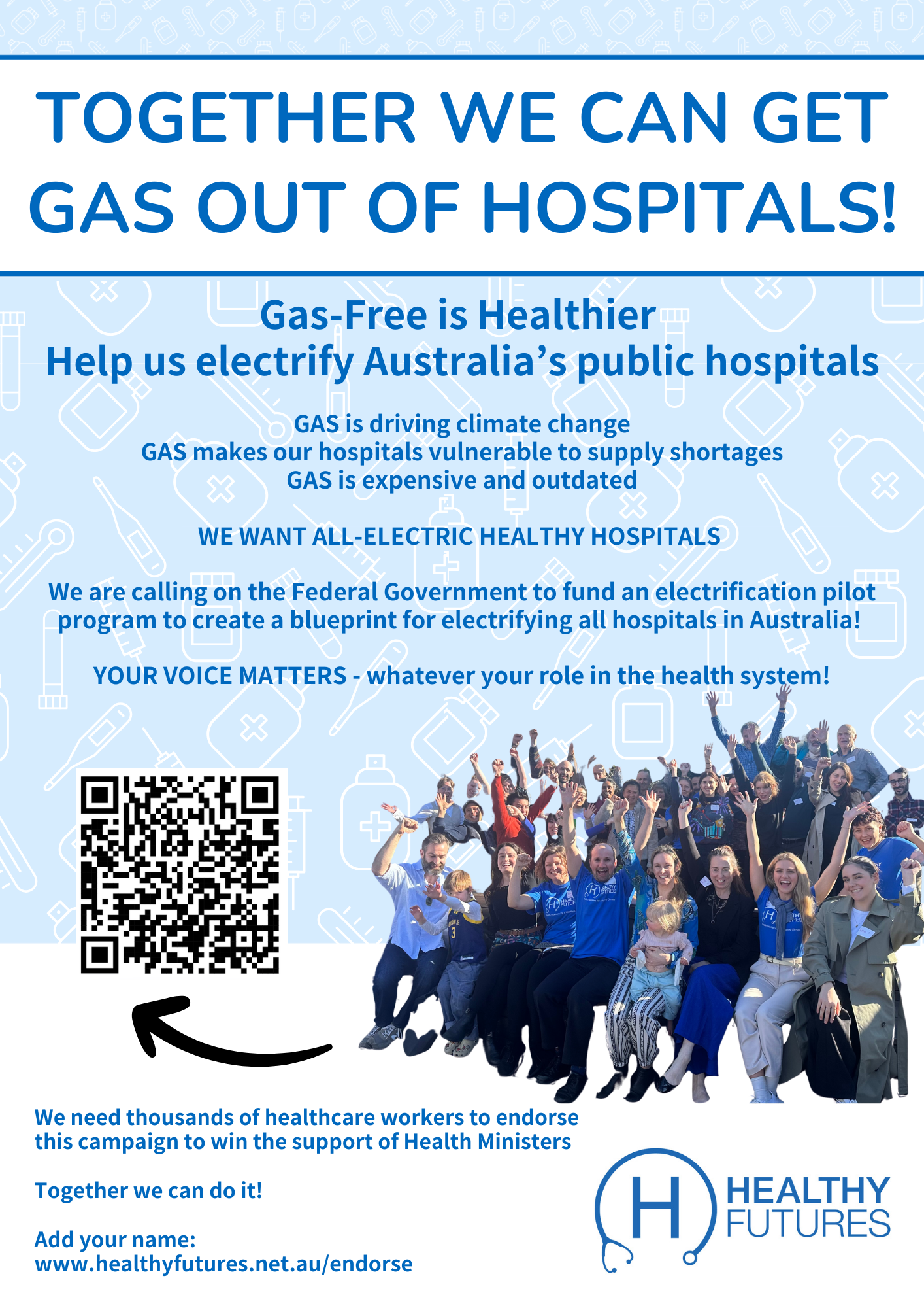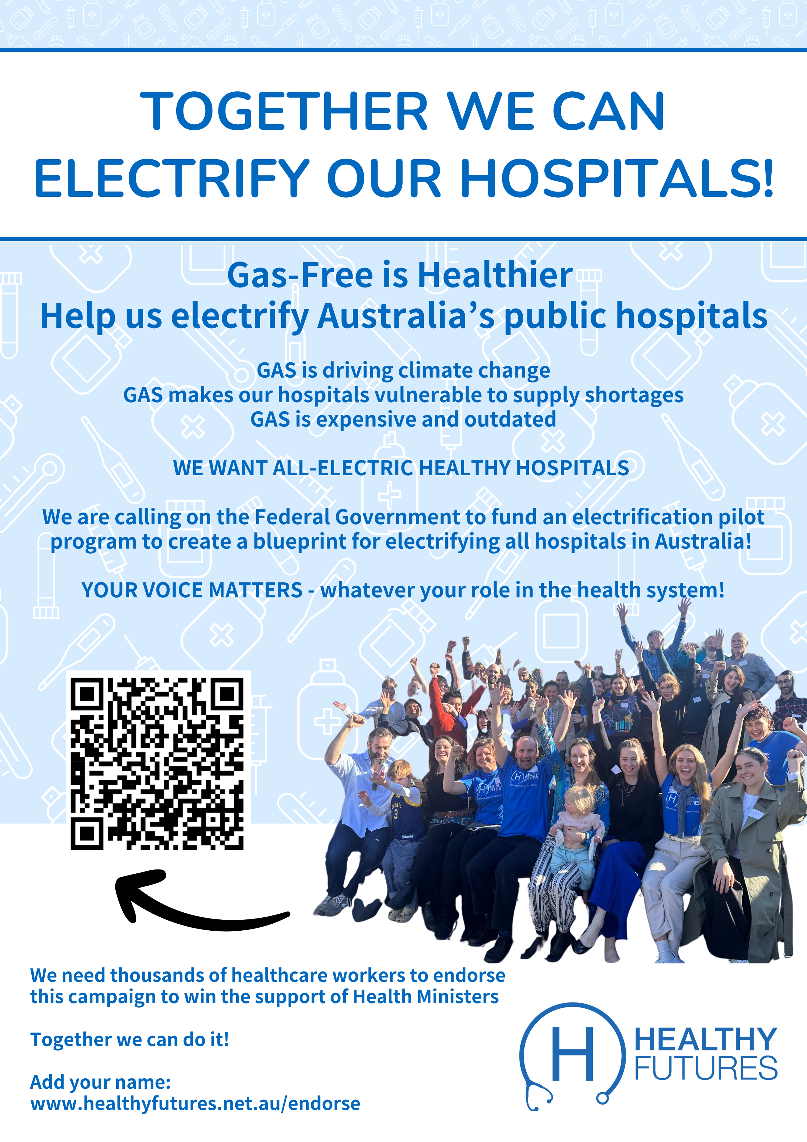 Thank you for calling on Australian governments to replace gas with electricity in Australian public hospitals.